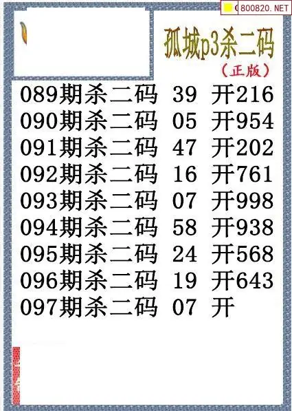 26年097期孤城本期杀码排3图谜