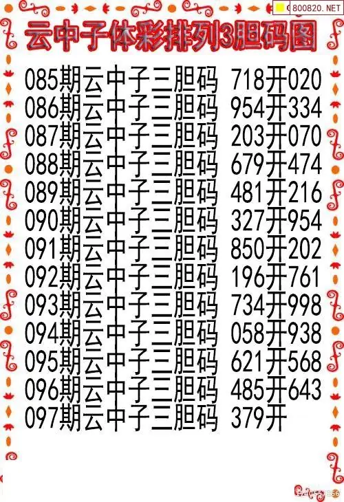 26097期云中子当天P3胆码图