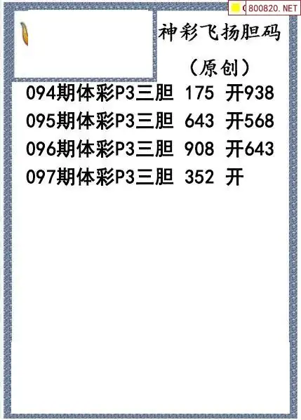 26097期神彩飞扬体彩P3三胆图谜