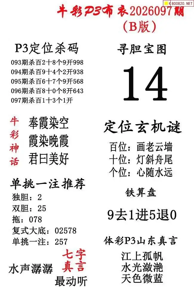 2026年097期丹东图汇总分析金胆图谜_排列三彩报图谜总汇分享