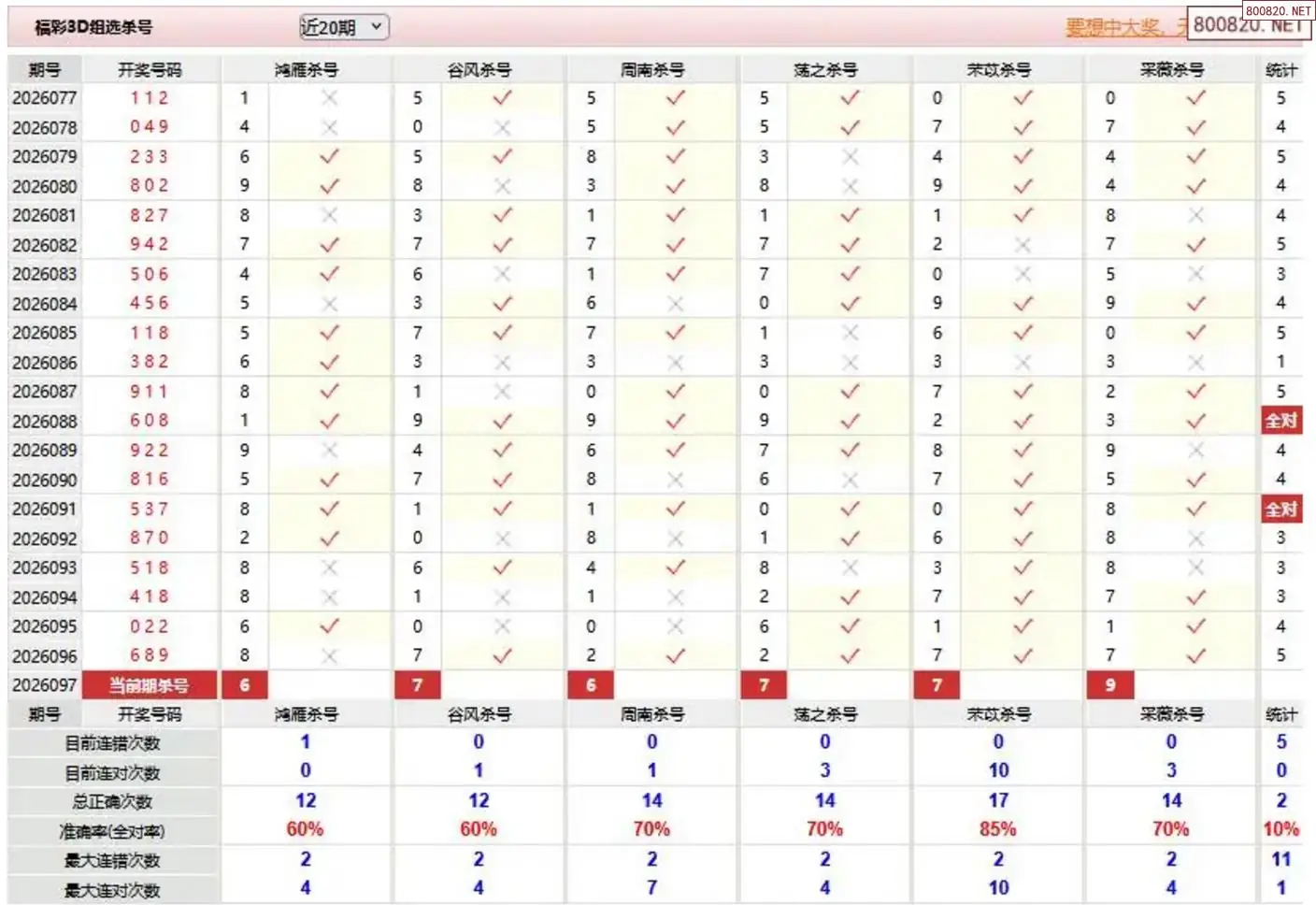 福彩3D26年097期非诚勿扰杀两号 3连中