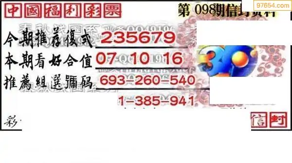 3D26年098期真5188图谜