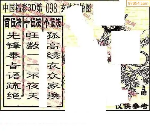 26年098期财神说彩3D综合图(原创)_3d财神到财神送胆