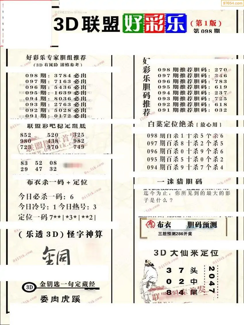 2026098期联盟好彩乐直通车1