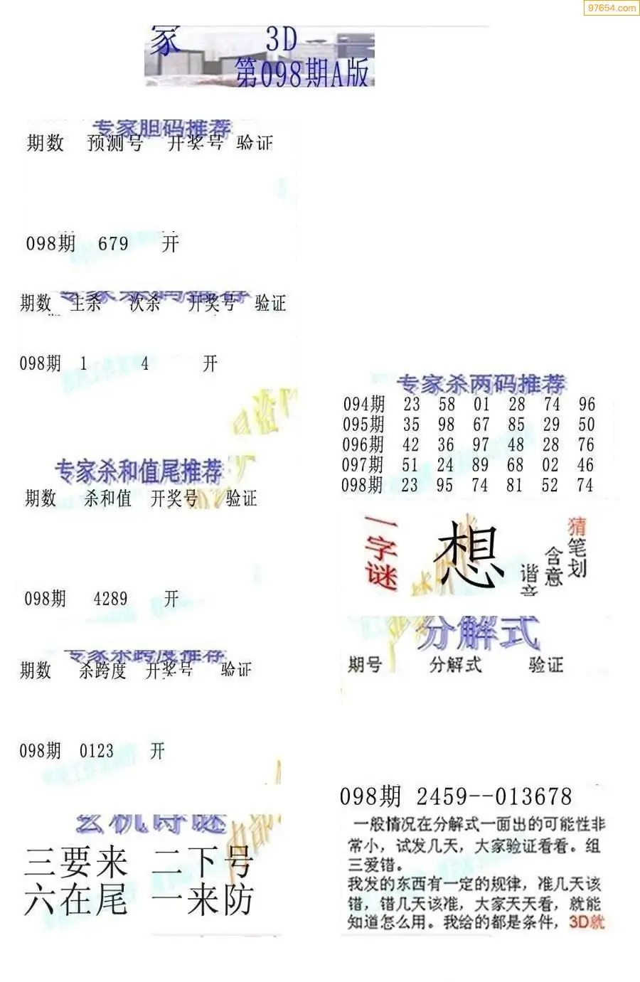 26098期3D彩民各类资料A版