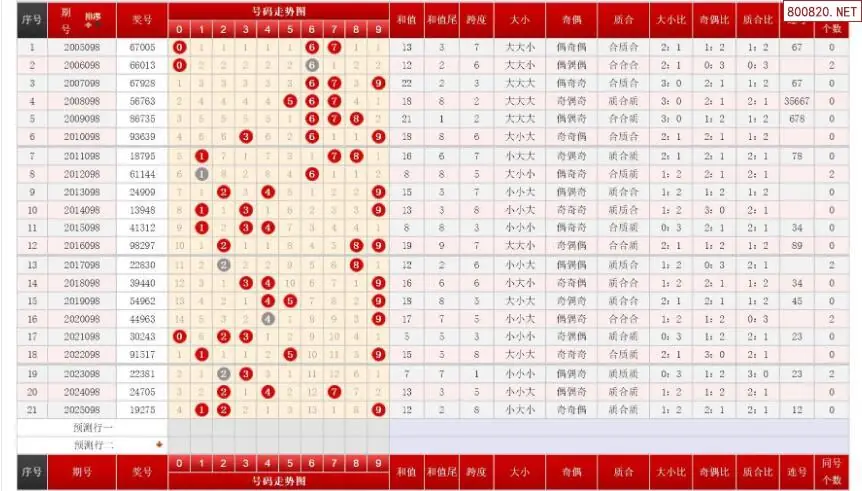 098期排列三历史号码对比图+数据走势分析