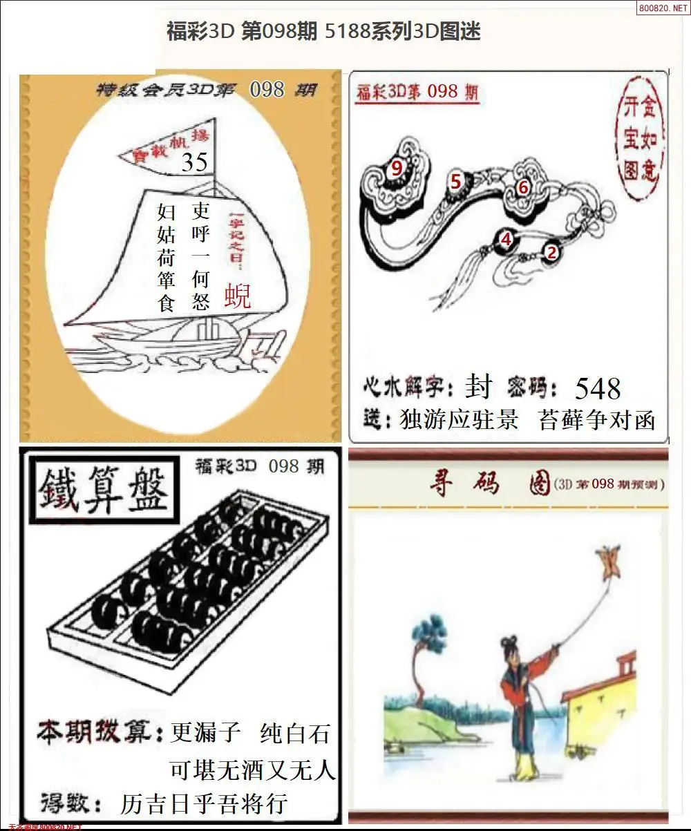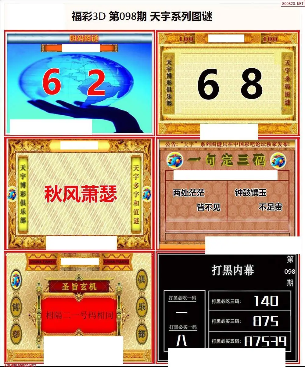 福彩3D098期天牛彩吧套图整合总汇