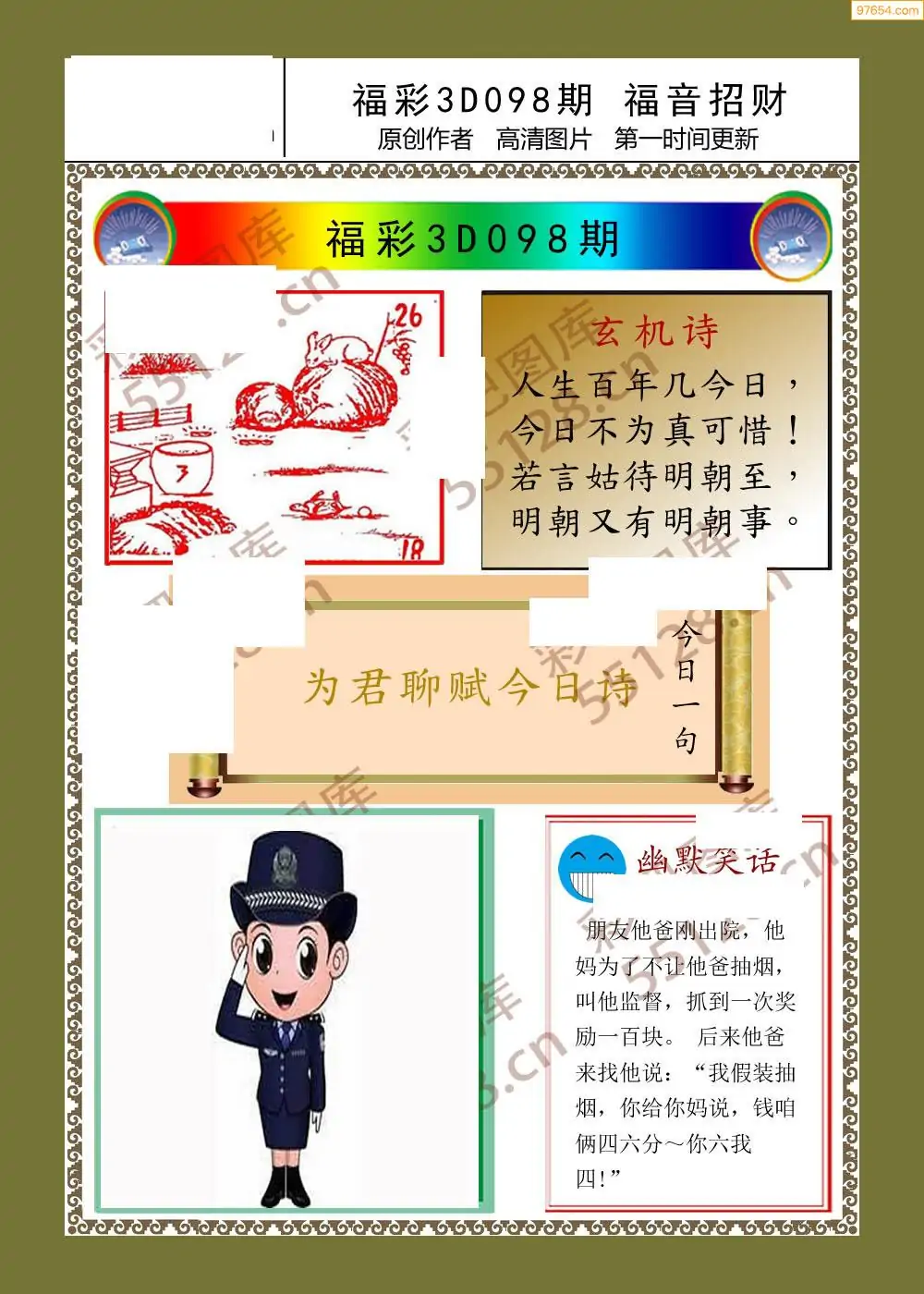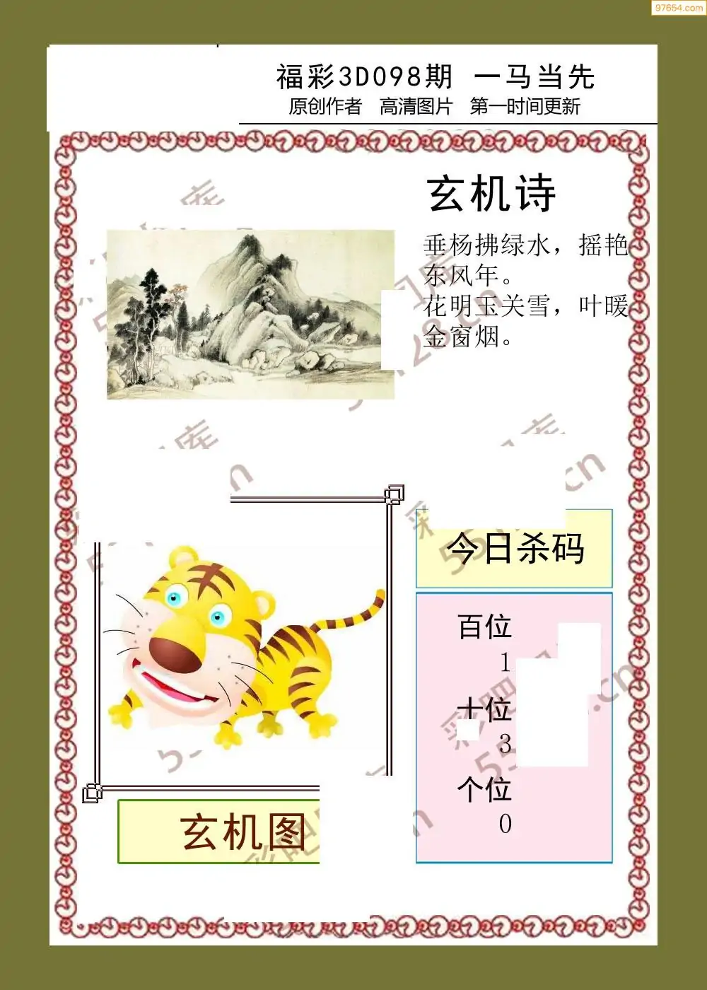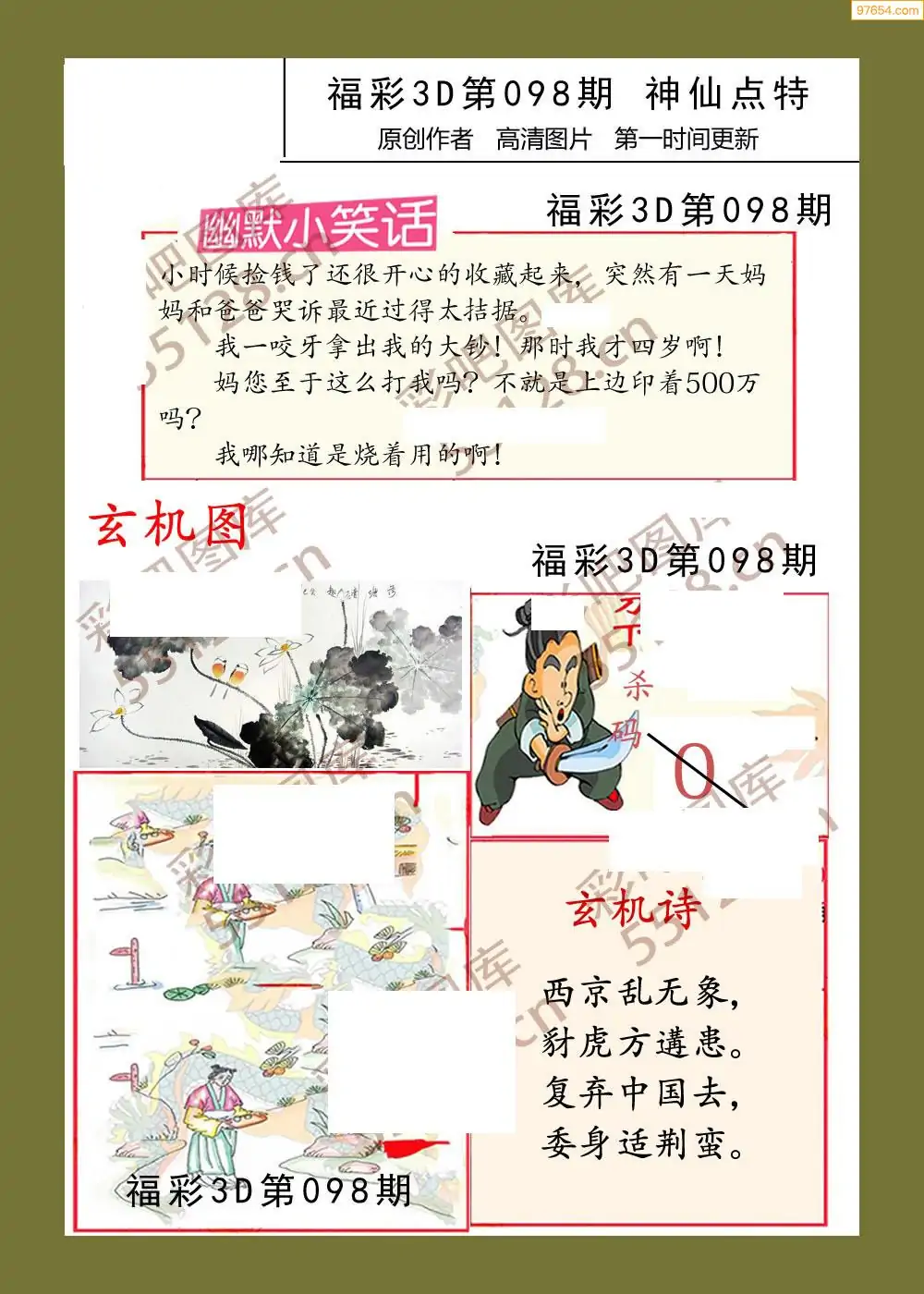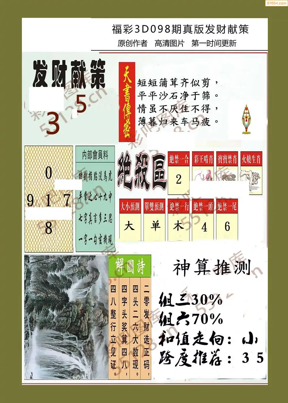 福彩3D098期天牛彩吧套图整合总汇