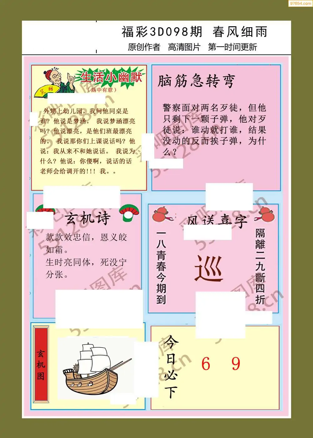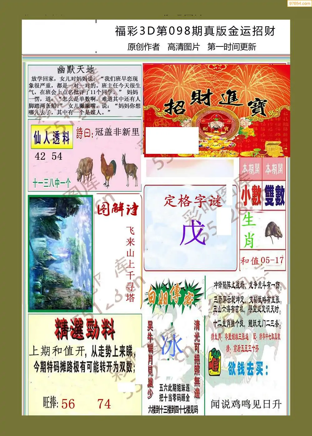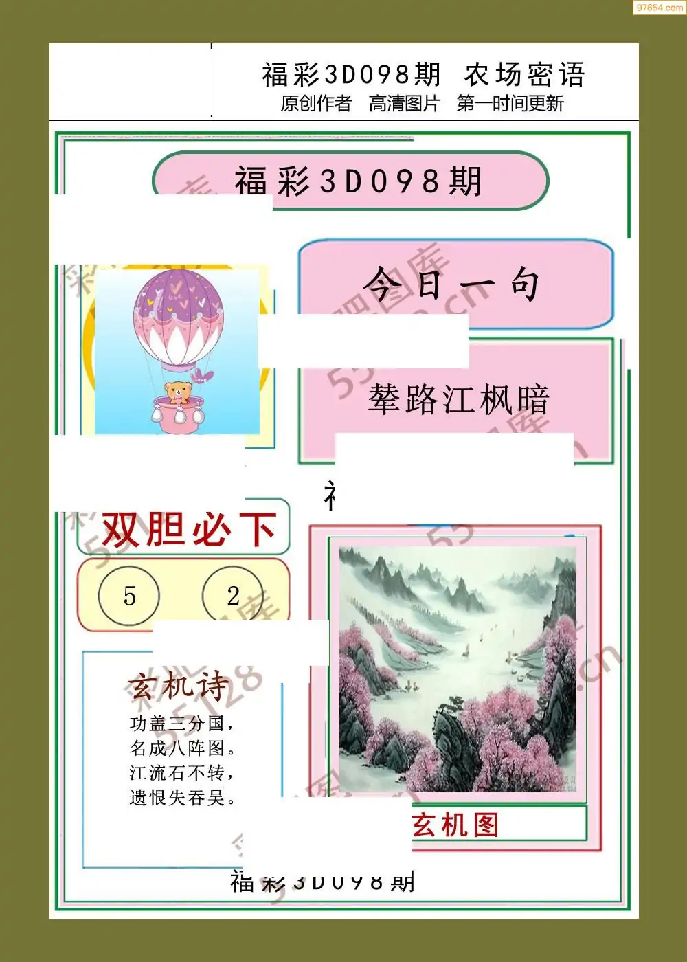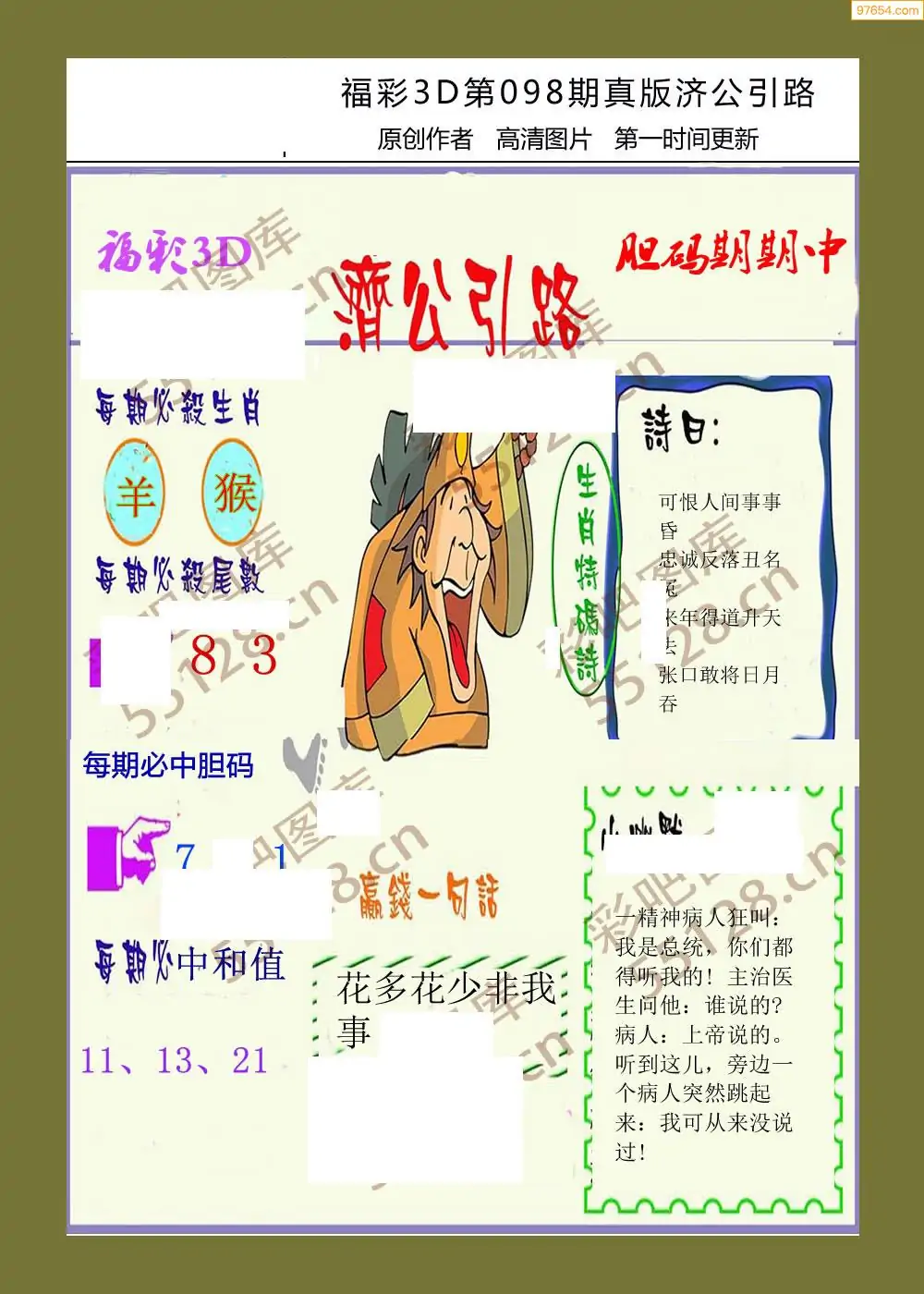 福彩3D098期天牛彩吧套图整合总汇