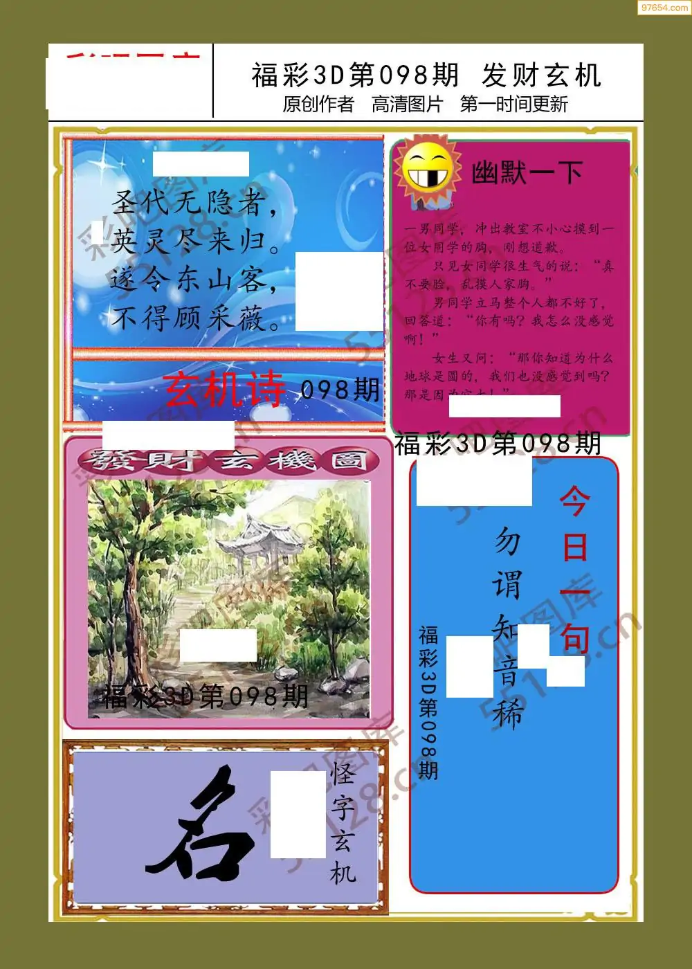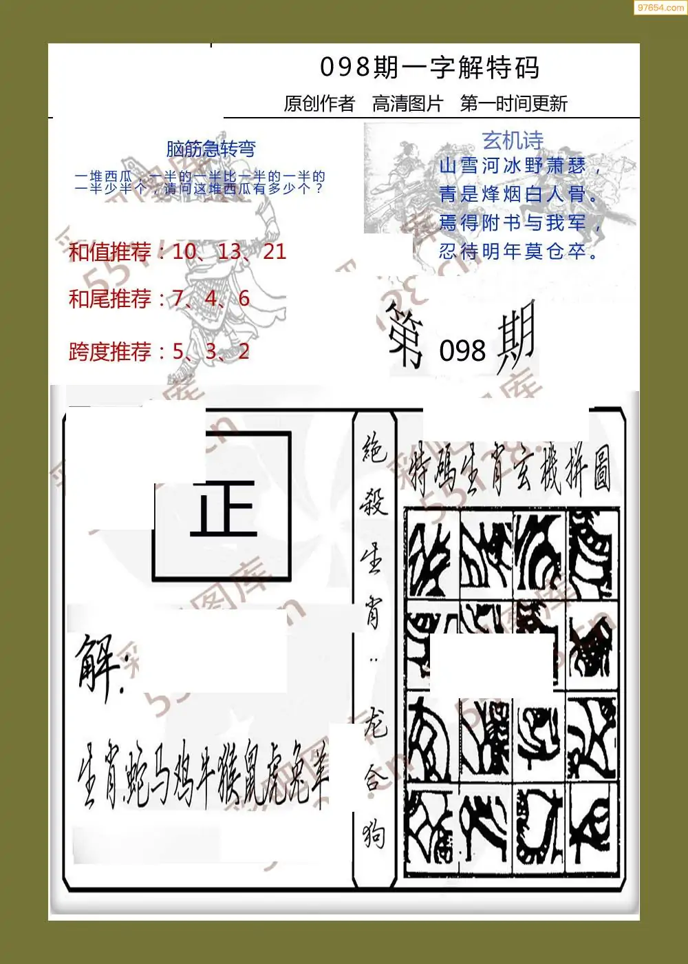 098期福彩天机壁怪字图