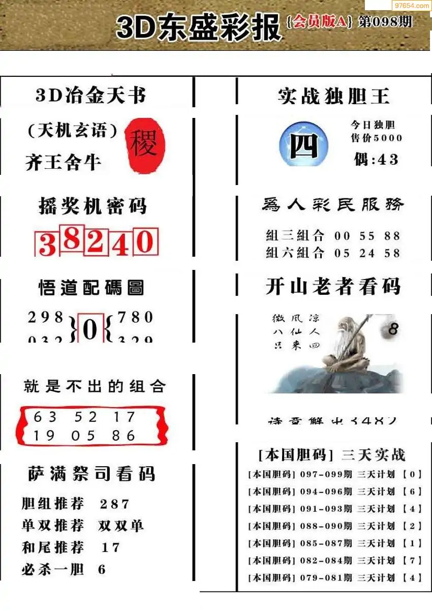 26098期今日3d三毛四版+东盛会员报