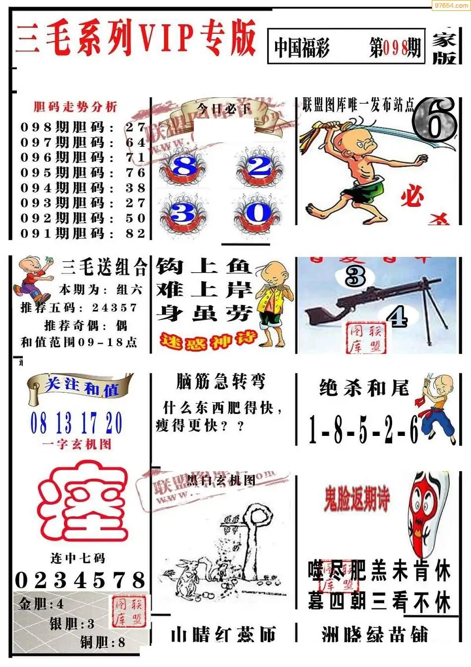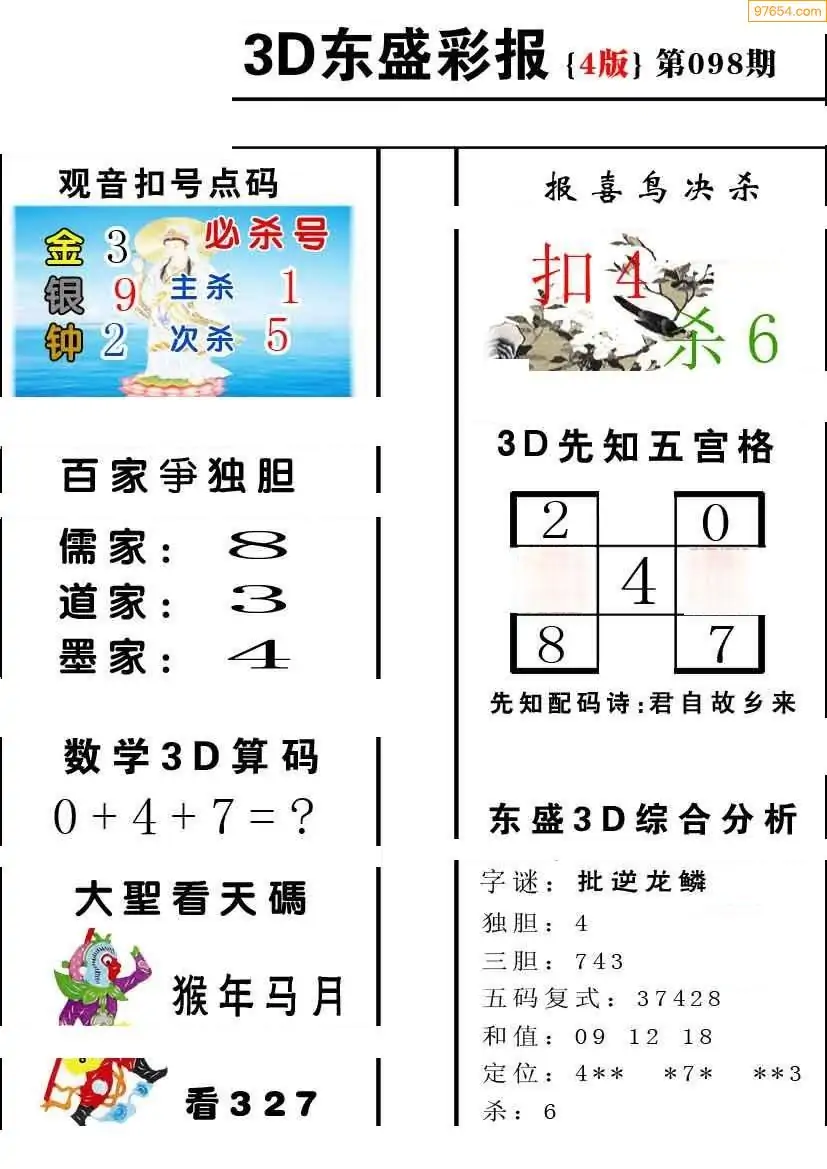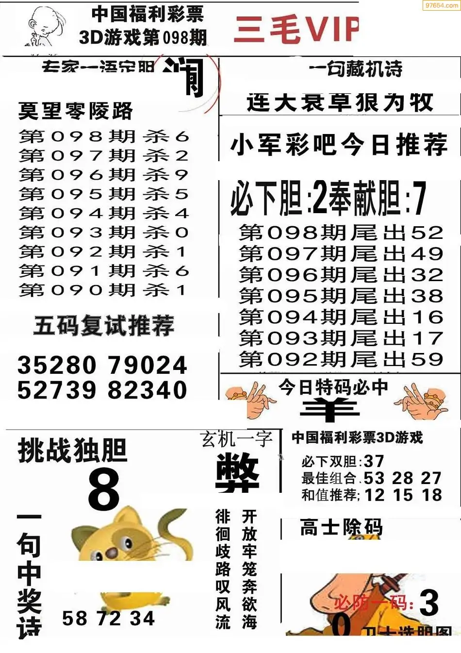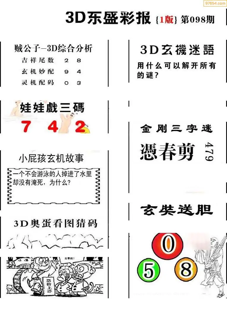 098期3D牛彩预测报+彩吧字谜报