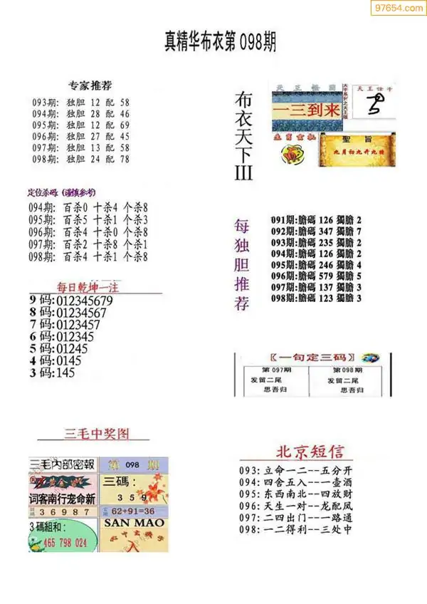 福彩098期3d真精华布衣+布衣早报(转载)