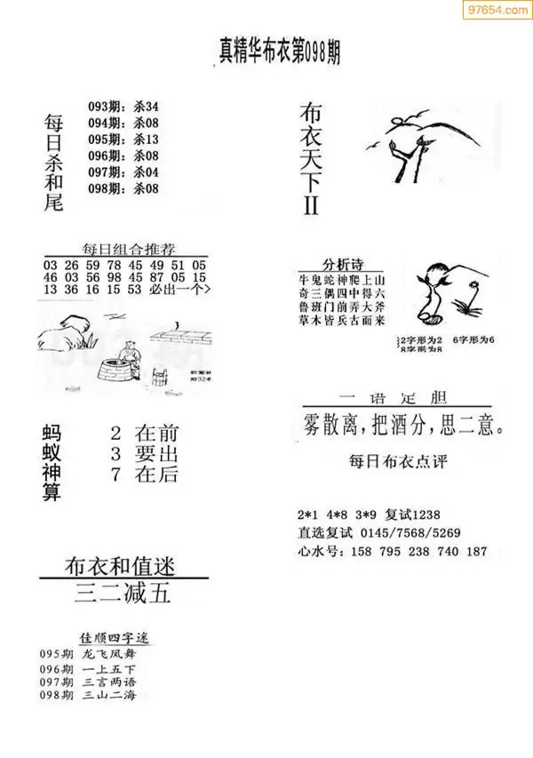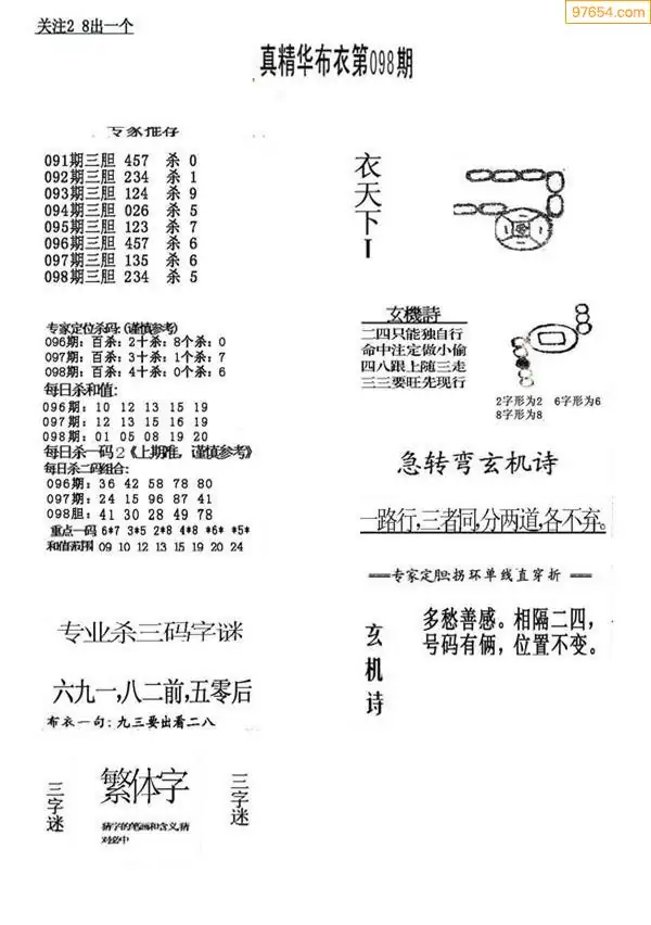 098期真版布衣神算专家推荐