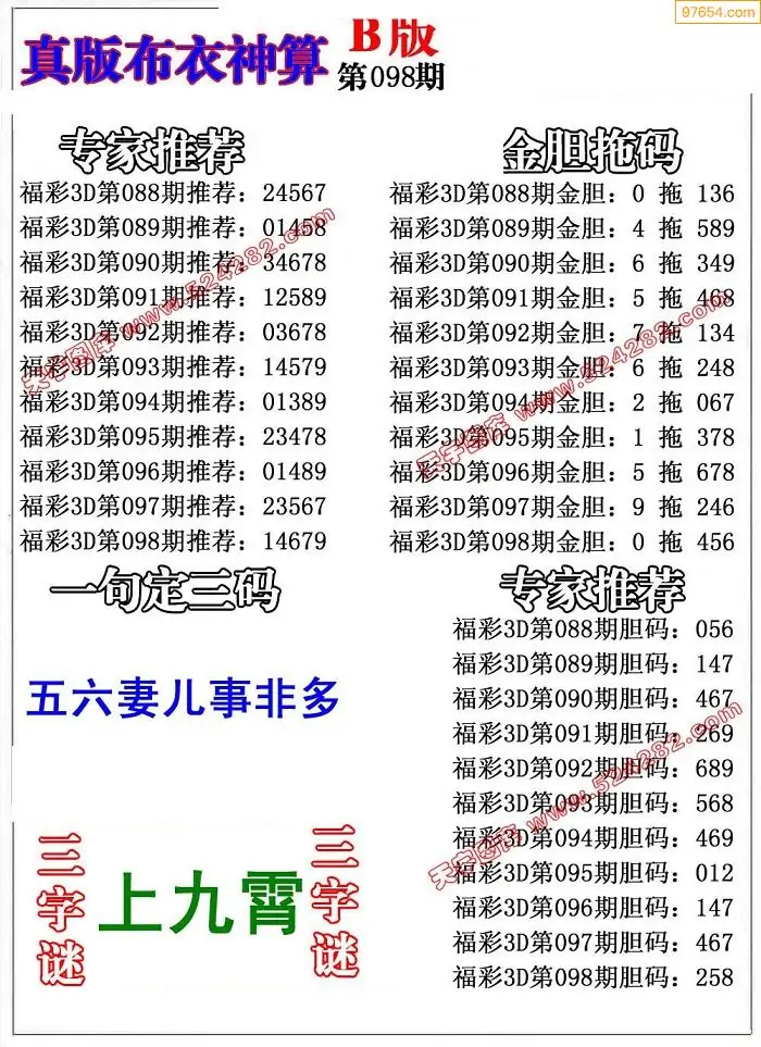 福彩098期3d真精华布衣+布衣早报(转载)