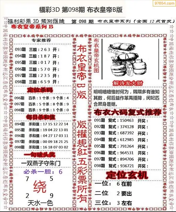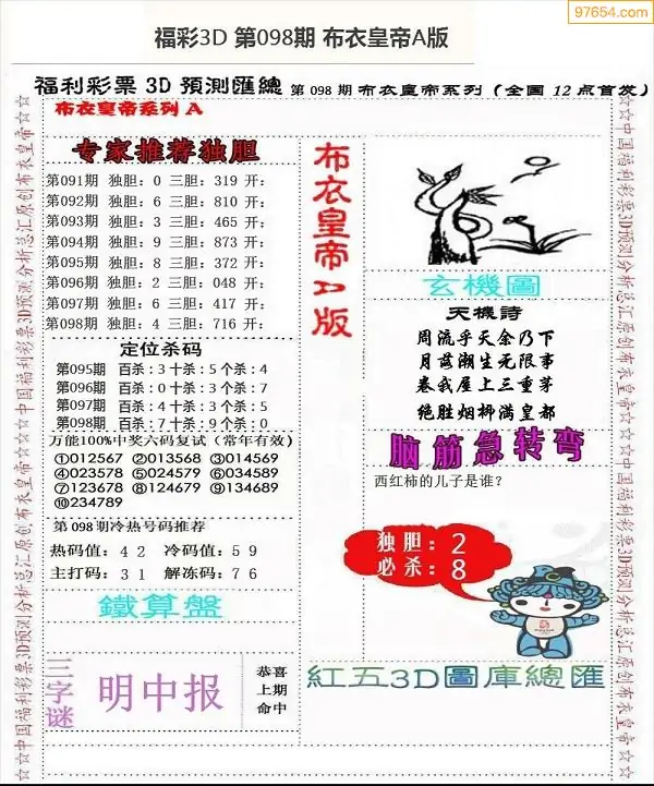 福彩098期3d真精华布衣+布衣早报(转载)