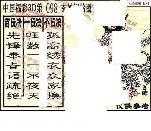 (3)2026098期3D预测总汇全图_福彩3d图谜字谜总汇