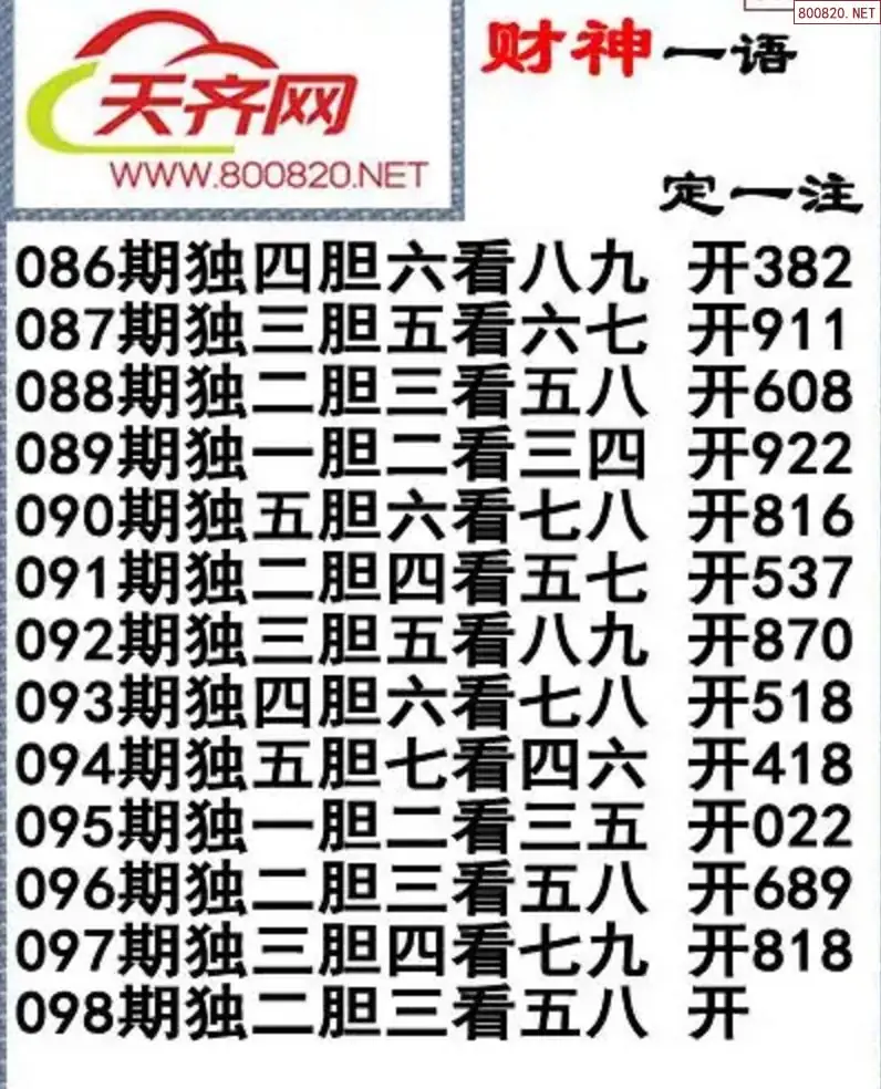 福彩3D26098期蓝仙子一句定三码