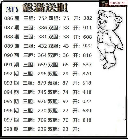 牛彩网098期福彩胆码图汇总 胆:86