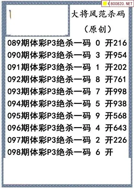 26年098期大将风范p3杀码体彩图谜