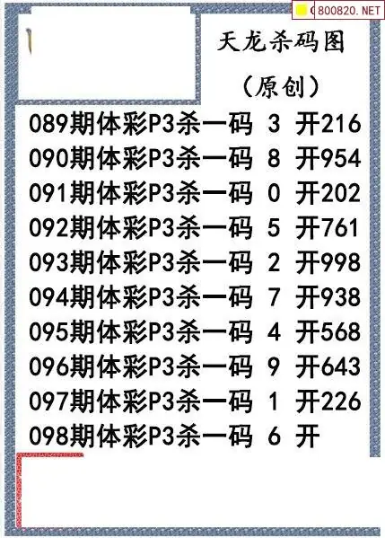 26年098期天龙体彩P3杀码图谜
