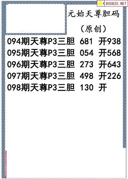 26098期元始天尊排列3胆码图