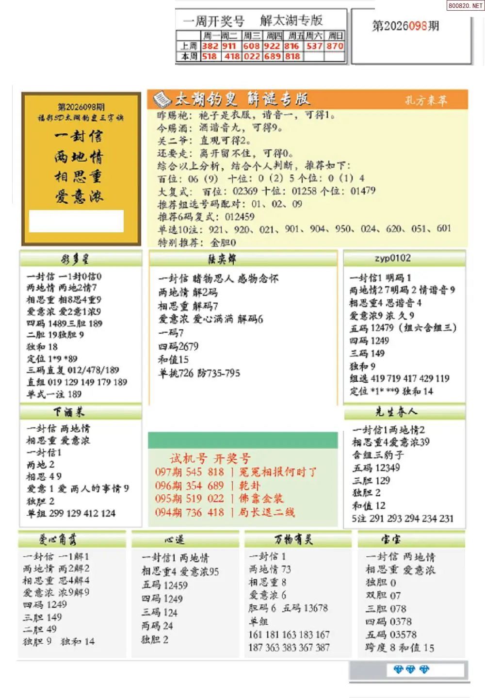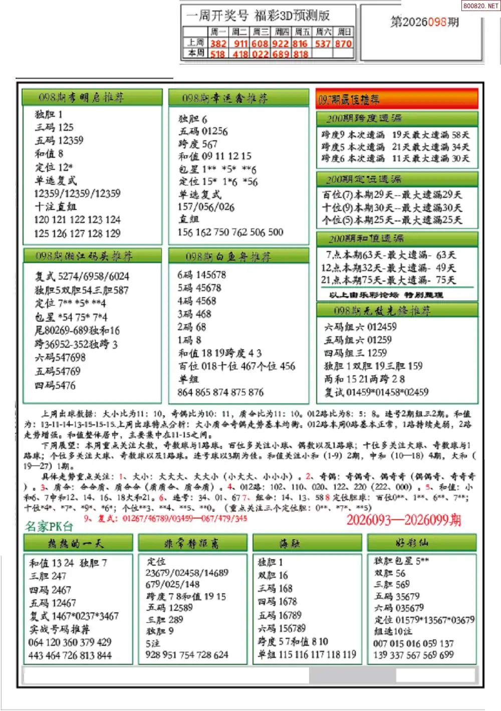 26年098期3D各板块资料整合汇总