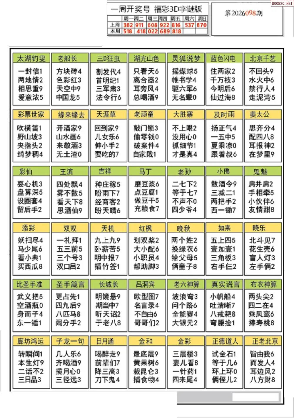 26年098期3d选号彩报图谜画谜