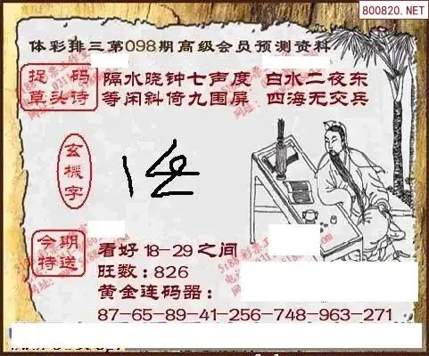 26年天吉体彩P3玄机怪字098期图迷