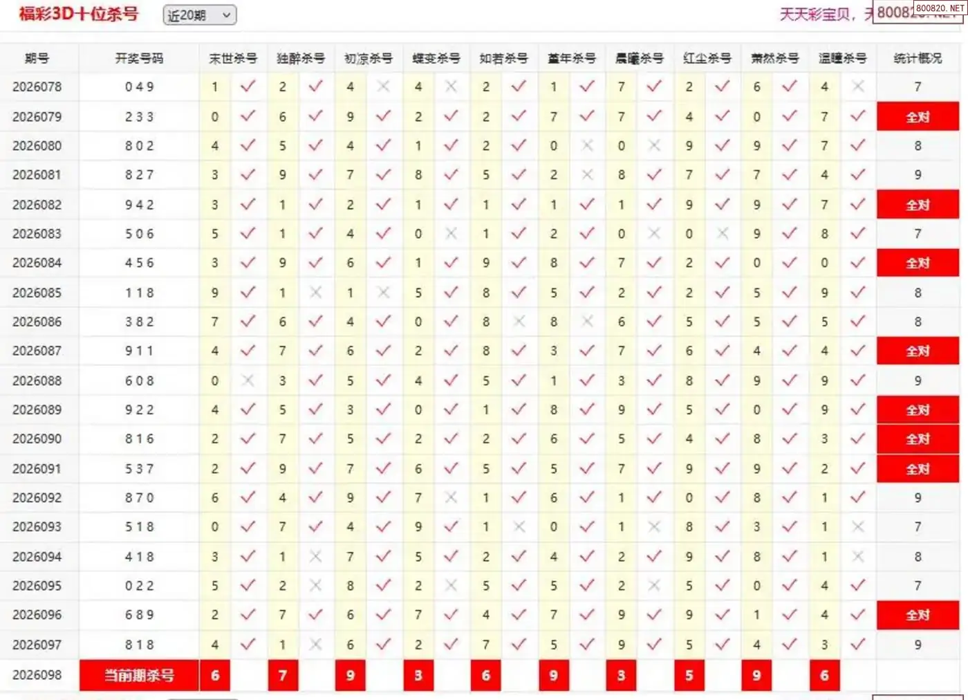 26年099期3d夜叉杀独码 5连中