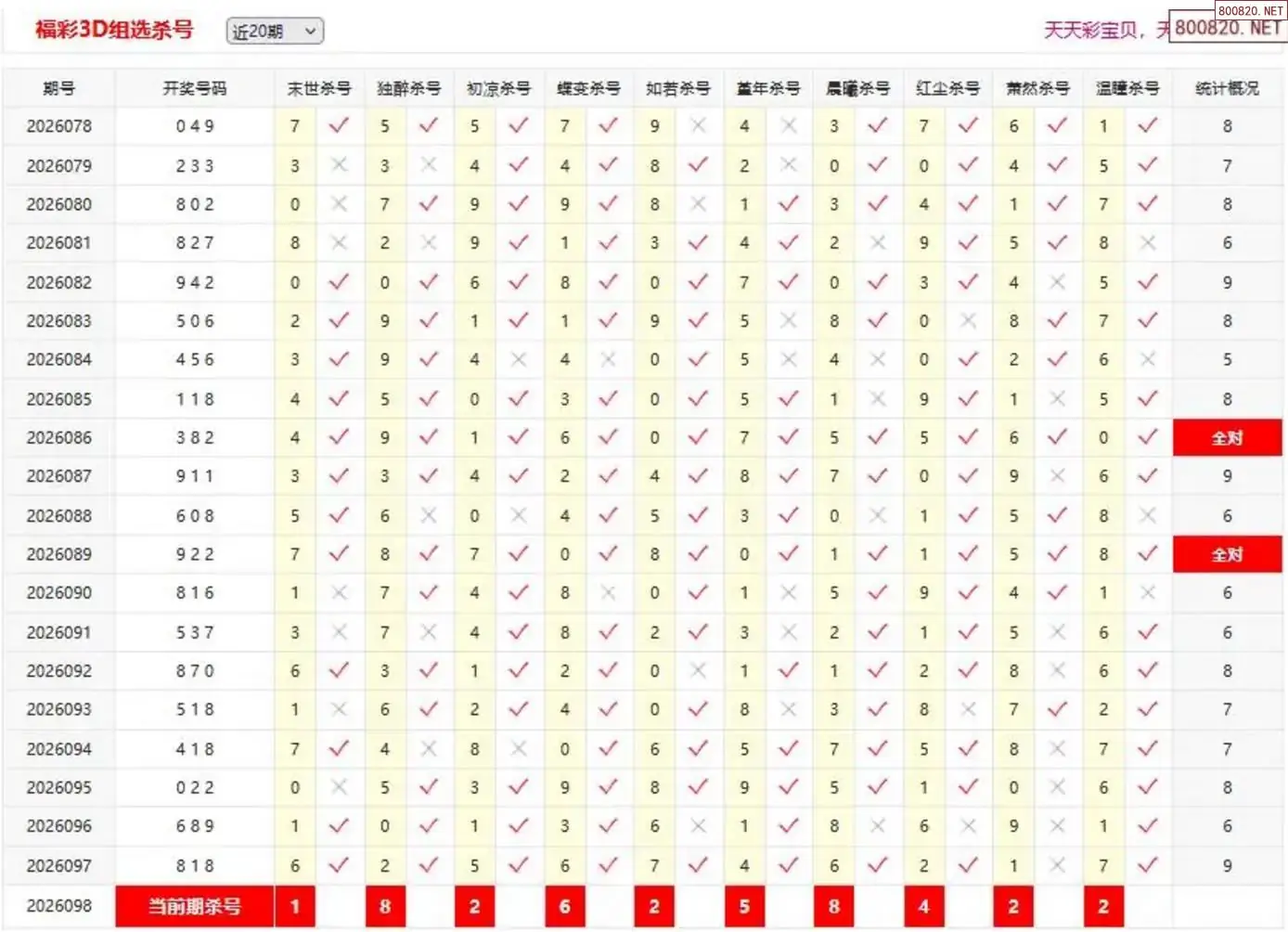 26年099期3d夜叉杀独码 5连中