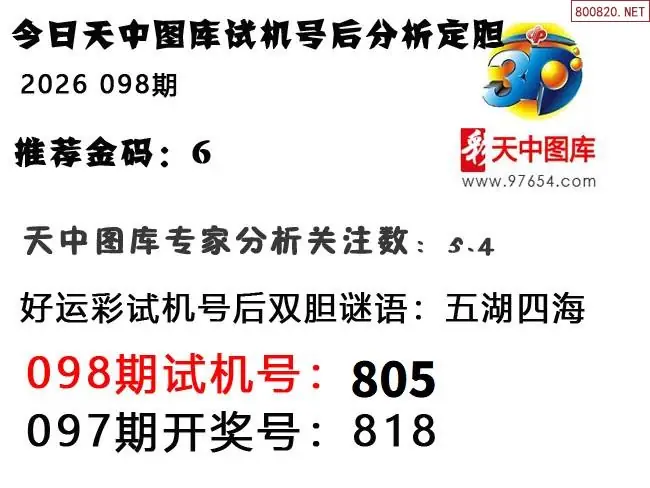 26年098期天中图库专家3D试机号后分析汇总