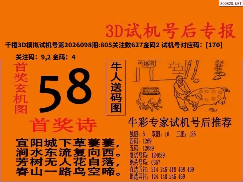 26098期福彩3D试机号后首奖诗