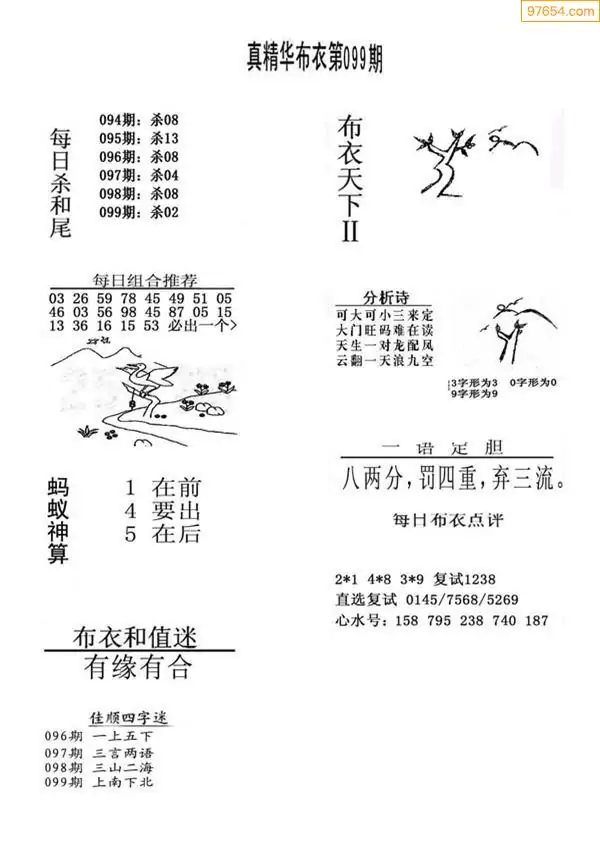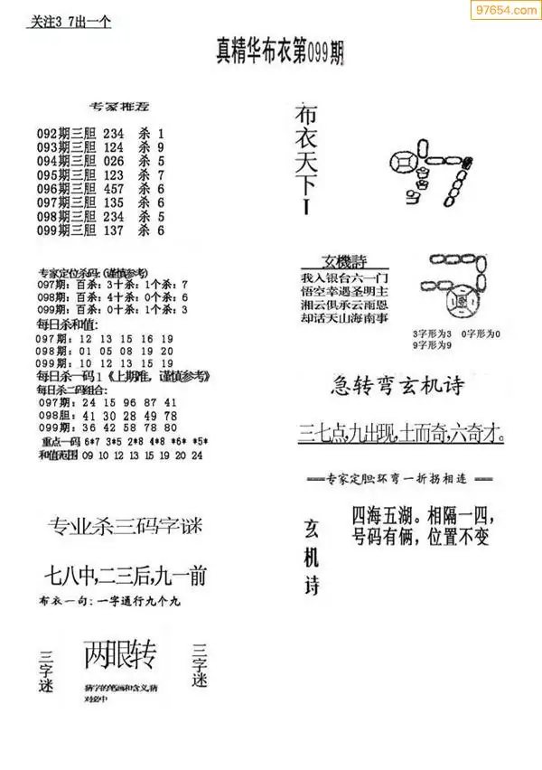 099期真版布衣神算专家推荐