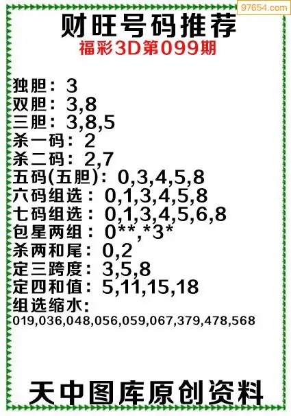 3D原创099期旺财出号推荐