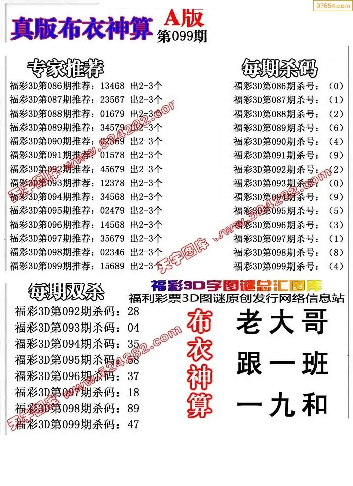 福彩099期3d真精华布衣+布衣早报(转载)