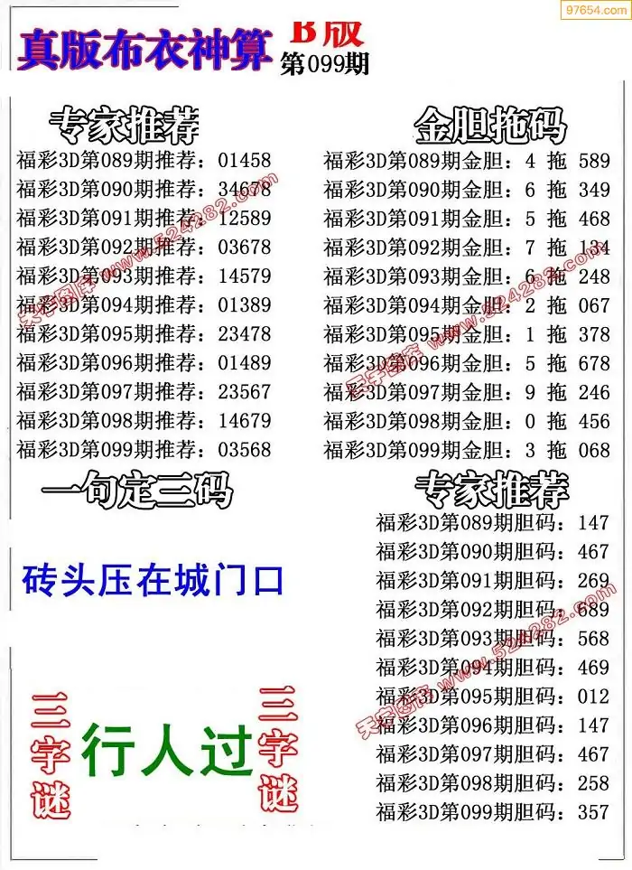 099期真版布衣神算专家推荐