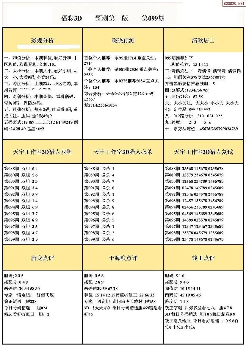 福彩3D099期天牛彩吧套图整合总汇