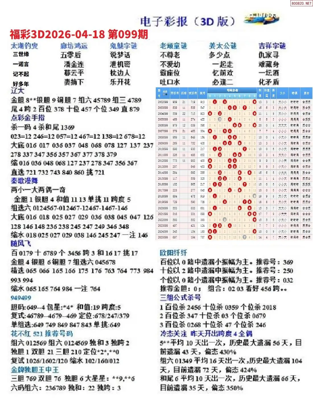 26年099期3D各板块资料整合汇总