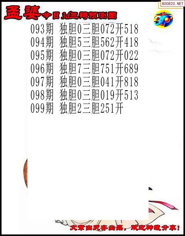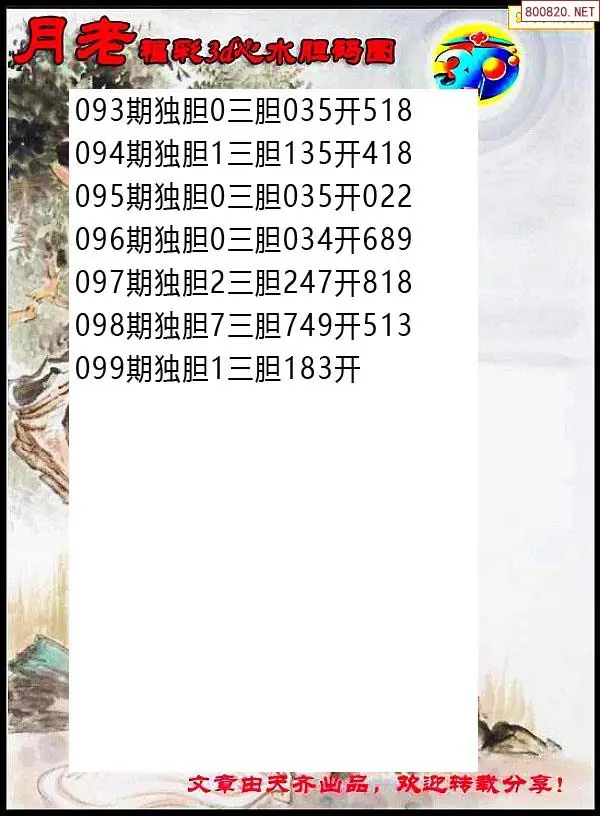 2026099期彩彩网3d原创图迷搜集(天中整理)