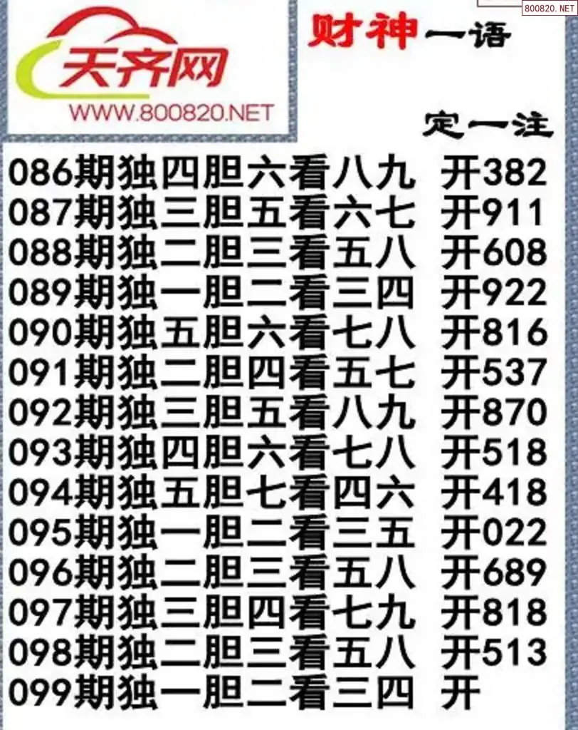 福彩3d26年099期字谜传说一句定三码