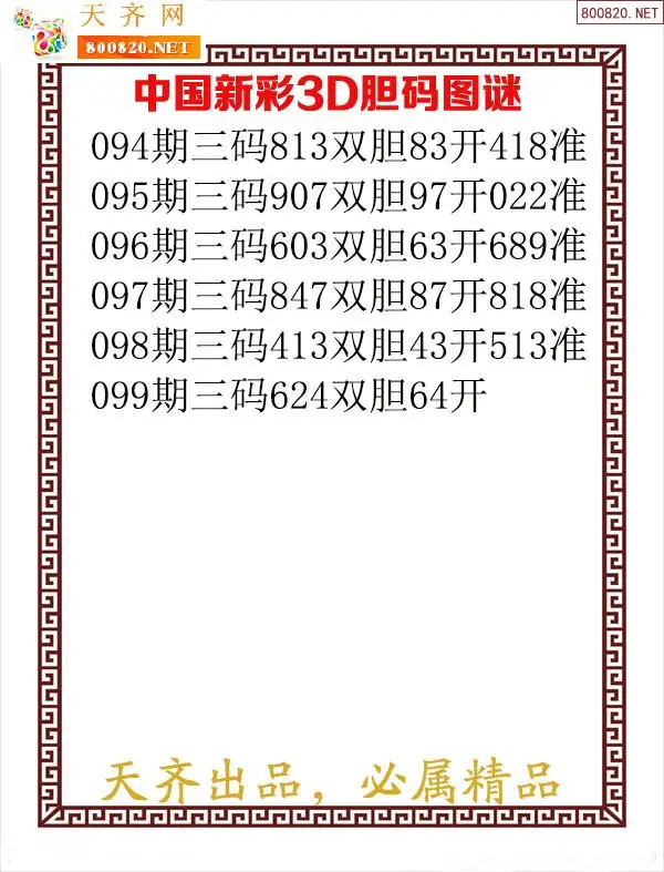天齐网3d26年099期胆码图 胆:87