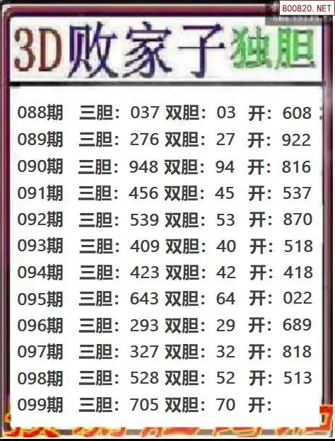 天齐网3d26年099期胆码图 胆:87