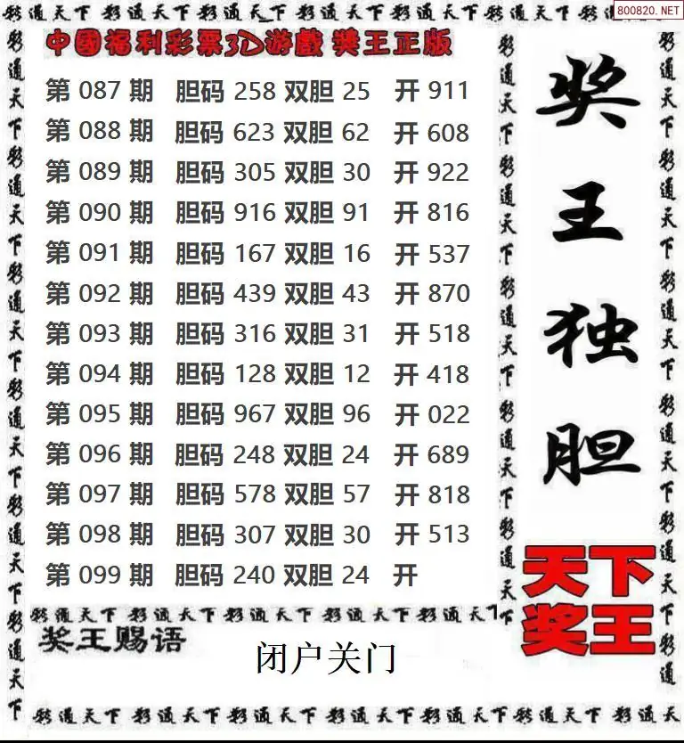 26099期钱王_福彩胆码推荐