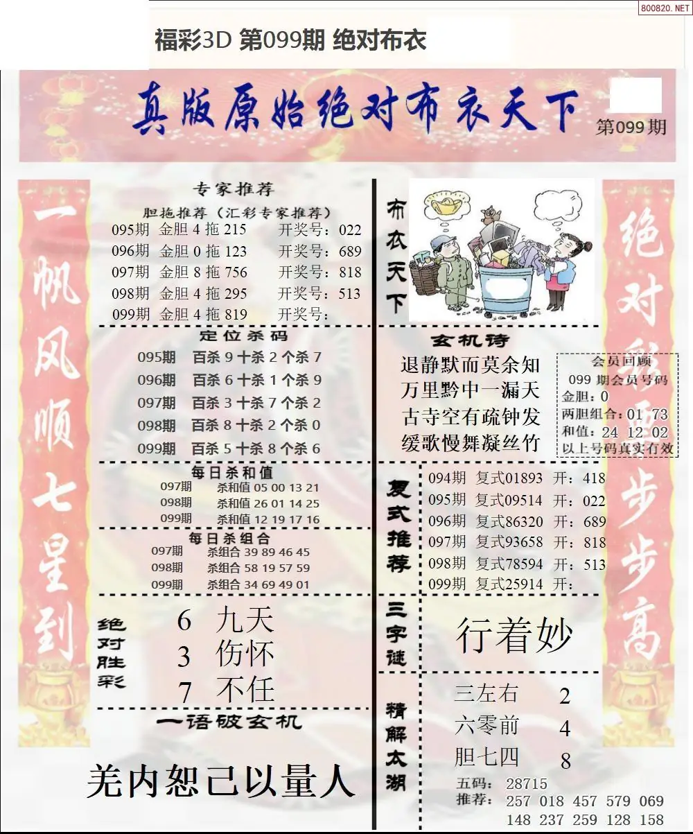 099期绝对布衣3d新版1
