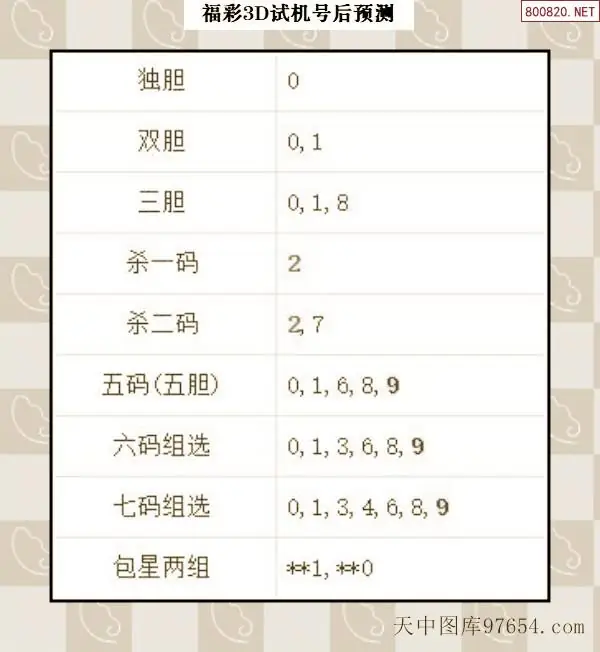 099期西南胆王预测本期3D开奖结果