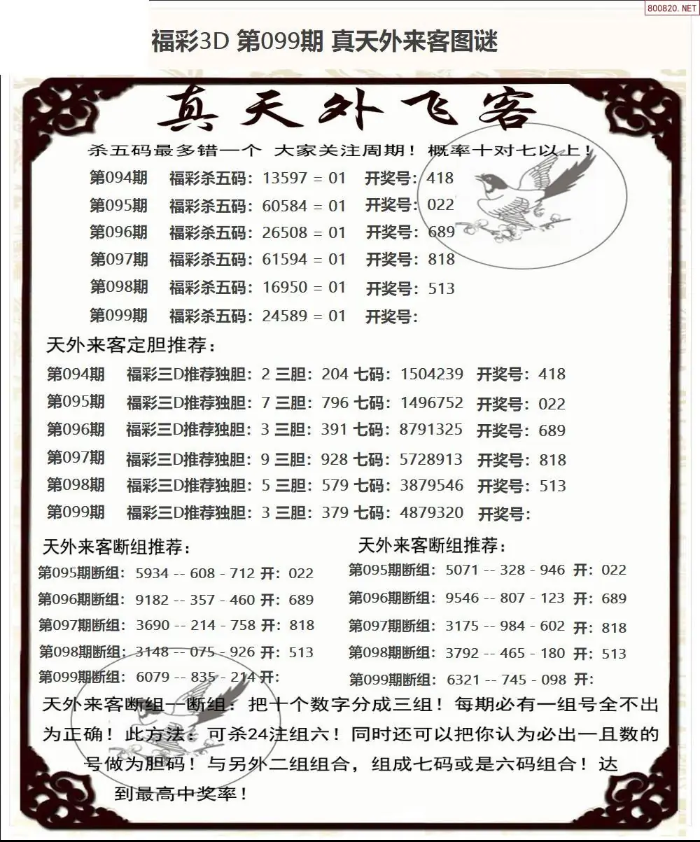 26年099期福彩3d真天外飞客图