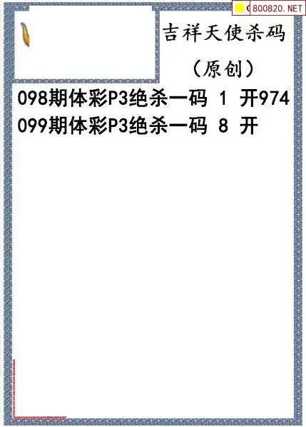 26年099期吉祥天使今日杀码图谜