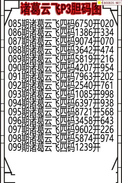26099期诸葛云飞今期P3胆码图