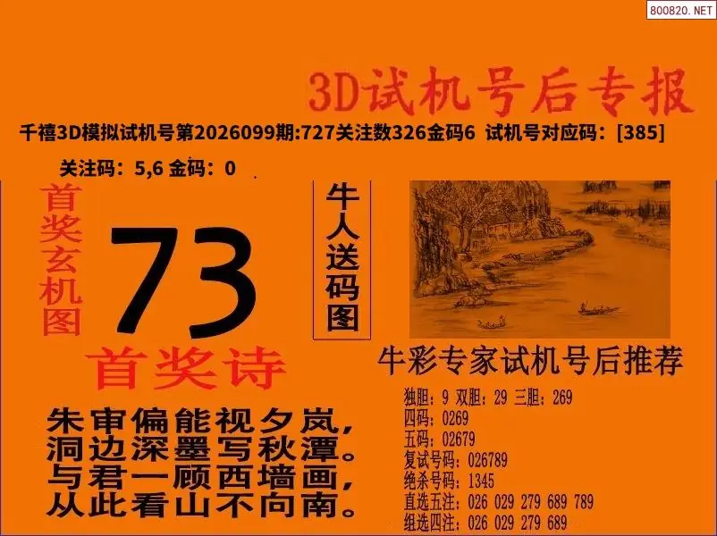 26099期福彩3D试机号后首奖诗